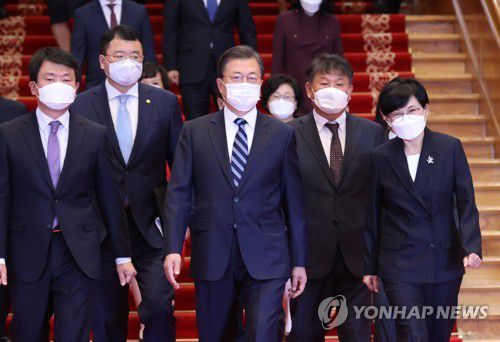 문 대통령은 대사들에게 "코로나(신종 코로나바이러스 감염증) 상황에서 대사들을 보내 걱정이 앞선다"며 "코로나가 언제까지 지속될지 알 수 없지만, 교민의 안전을 각별히 챙겨달라"고 당부했다.