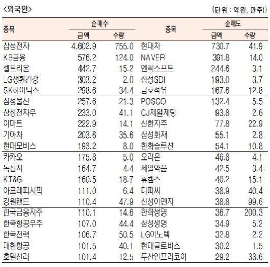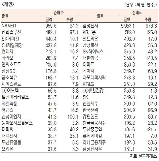 [표]유가증권 기관·외국인·개인 순매수·도 상위종목(11월 11일-최종치)