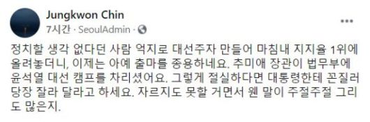 #진중권 #윤석열 #대선주자 #추미애 #월성원전1호기 #월성1호기 #대권잠룡 #윤석열1위 #진중권페이스북