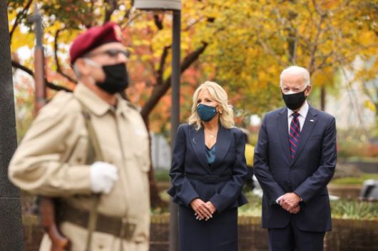 조 바이든 미국 대통령 당선인이 11일(현지시간) 재향군인의 날(베테랑데이)를 맞아 한국전 참전비를 찾아 참배했다. 로이터 뉴스1 |