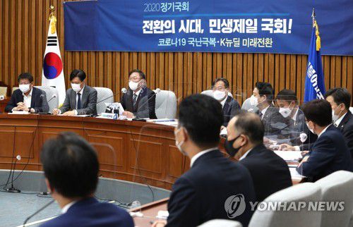 정책조정회의에서 발언하는 김태년 원내대표 |