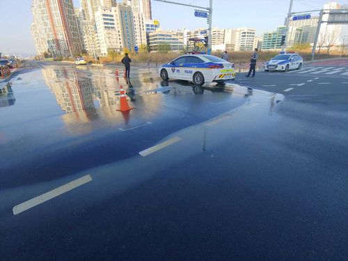 출동한 경찰이 현장을 확인해보니 도로는 약 1m가량 균열이 생기고 8㎝가량 침하 돼 있었다.