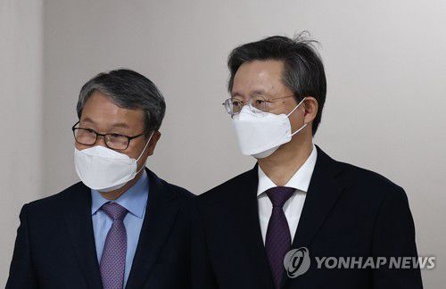 우병우 전 청와대 민정수석이 12일 오후 서울 서초구 서울고법에서 열린 공판에 출석하기 위해 법정으로 향하고 있다. [사진 출처=연합뉴스] |