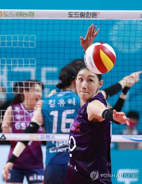 공을 내리치는 김연경 |