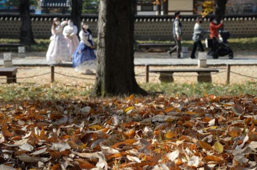 완연한 가을 날씨를 보인 12일 전북 전주시 전주한옥마을 경기전에 떨어져 내린 낙엽이 가득 쌓여 있다. 뉴시스 |