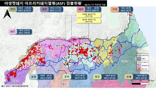 야생멧돼지 아프리카돼지열병 발생 세부현황[환경부 제공. 재판매 및 DB 금지] |