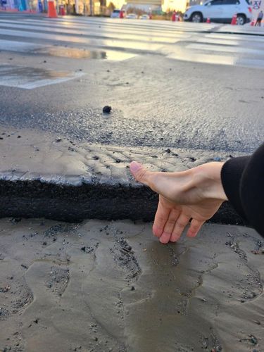 편도 4차로 중 3차로에 1m가량 균열이 발생했고 인근 횡단보도와 인도 사이에도 균열이 발생했다.