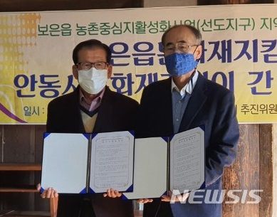[안동=뉴시스] 김진호 기자 = 경북 안동시와 충북 보은군 문화재지킴이가 14일 안동 임청각에서 공동발전을 위한 업무협약(MOU)을 맺었다.