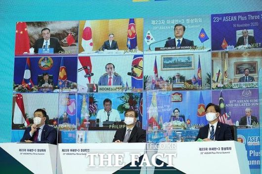 문 대통령은 이날 오후 청와대에서 화상으로 진행된 제23차 아세안(ASEAN)+3(한·중·일) 정상회의에 참석했다. 아세안+3는 1997년 아시아 금융위기에 대한 공동대응을 위해 출범한 아세안 10개국 및 한·중·일 3국 간 회의체다. 보건·금융·경제·정보통신기술(ICT)·교육 등 20여개 분야에서 협력을 진행하고 있다.