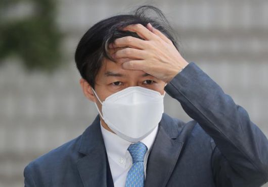 조국 전 법무부 장관이 3일 오전 서울 서초구 서울중앙지방법원에서 열린 뇌물수수 등 혐의에 관한 공판에 출석하고 있다. 뉴스1 |