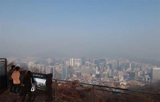 서울을 비롯한 수도권 미세먼지 농도가 `나쁨` 수준을 보인 15일 서울 남산에서 바라본 도심이 미세먼지로 인해 뿌옇다. [한주형 기자] |