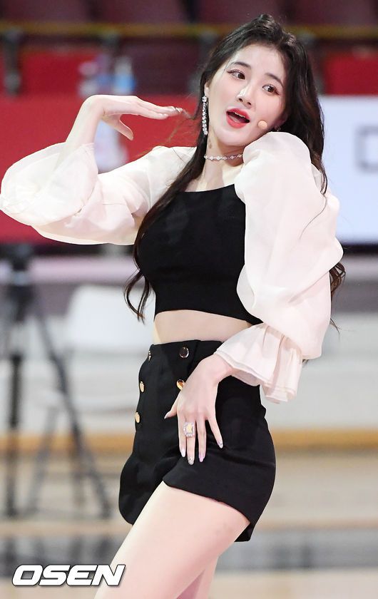 [OSEN=안양, 민경훈 기자] 15일 오후 경기도 안양시 안양실내체육관에서 2020~2021 현대모비스 프로농구' KGC 인삼공사와 KCC 이지스의 경기가 진행됐다. 하프타임에 가수 겸 치어리더 김해리가 코트 위에서 화려한 무대를 선보이고 있다./rumi@osen.co.kr