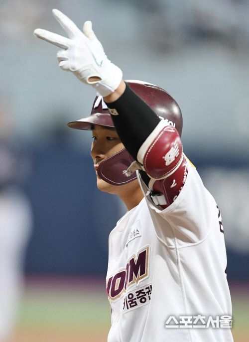키움 김하성이 16일 고척스카이돔에서 열린 2020 KBO리그 키움과 두산의 경기 7회말 1사 만루 상황에서 두산 투수 이승진을 상대로 2타점 적시타를 치고 세리머니를 하고 있다. 2020. 10. 16. 고척 | 박진업기자 upandup@sportsseoul.com |