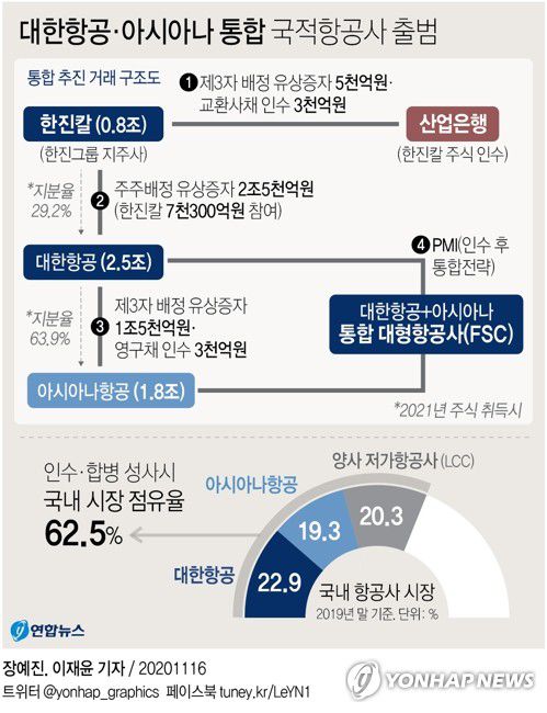 (서울=연합뉴스) 김남권 김연숙 기자 = 정부와 산업은행이 16일 대한항공의 아시아나항공 인수를 공식화했다.