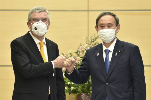 교도통신과 NHK 방송에 따르면 스가 총리는 이날 오전 도쿄 총리관저에서 총리 취임 이후 처음으로 바흐 위원장과 대면 회담을 가졌다. 바흐 위원장은 도쿄올림픽이 올해 3월 말 신종 코로나바이러스 감염증(코로나19) 팬데믹(세계적 대유행) 사태 여파로 1년 연기된 이후 처음으로 일본을 방문해 괕관련 논의를 진행했다.