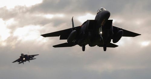 출격하는 미 공군의 F-15E 스트라이크 이글 전투기 |