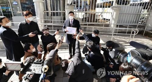 진정서 제출 기자회견 가지는 친부 대리인 |