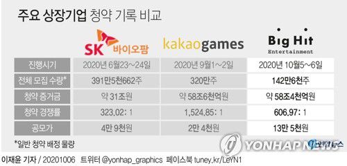 [그래픽] 주요 상장기업 청약 기록 비교 |