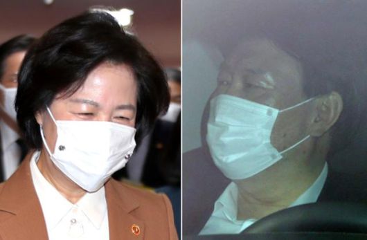지난 17일 오전 추미애(왼쪽) 법무부 장관이 정부서울청사에서 열린 국무회의에 참석하고 있다. 오른쪽 사진은 윤석열 검찰총장이 서울 서초구 대검찰청으로 출근하는 모습. 연합뉴스 |