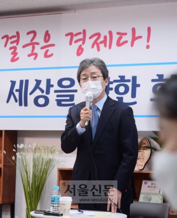 유승민 전 미래통합당(현 국민의힘) 의원이 18일 서울 여의도에 위치한 개인사무실인 ‘희망 22’에서 기자간담회를 열고 대선 출마 의지를 재확인하고 있는 모습.김명국 선임기자 daunso@seoul.co.kr |