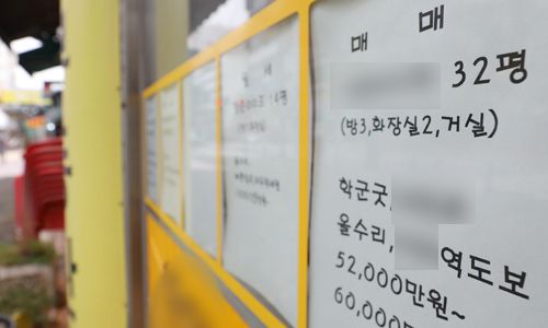 1기 신도시인 분당과 일산 동구 아파트 가격 격차가 2천 367만원으로 벌어진 가운데 18일 경기 고양시 일산동구의 한 부동산에 매물 안내문이 부착돼있다. 뉴시스 |