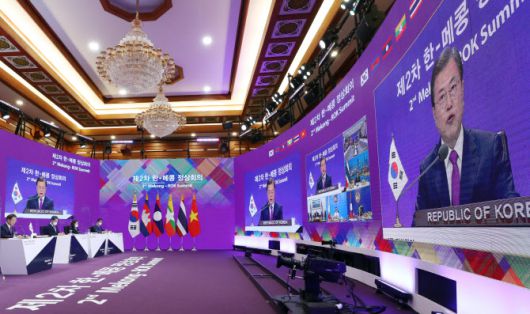 문재인 대통령이 지난 13일 청와대에서 열린 한·메콩 화상 정상회의에서 발언하고 있다. (사진=연합뉴스) |