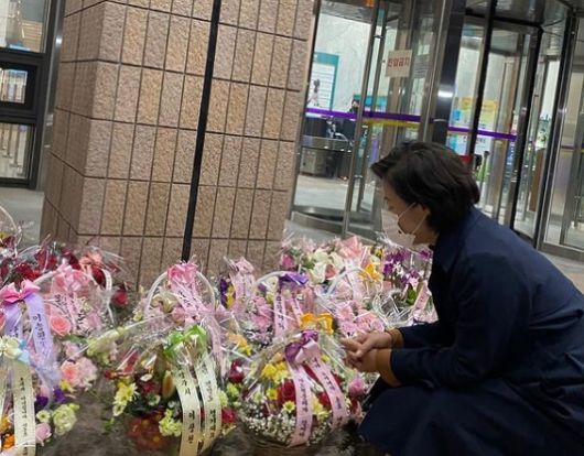 이에 대해 추 장관 측은 “매일 장관님에게 들어오는 수많은 꽃다발로 만들어진 장관실 꽃길”이라고 설명하면서 “퇴근길에 또 한가득 쌓인 꽃다발에 장관님 찐멈춤”이라고 적었다.