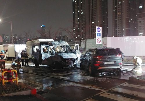 이 사고로 승합차에 불이 나 엔진룸 등이 모두 탔으며 투싼 차량과 주변에 있던 1t 트럭도 일부 소실돼 2천750만원 상당(소방서 추산)의 재산피해가 발생했다.