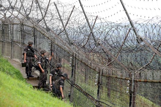 24일 오전 경기도 연천지역 최북단 접경지역 GOP(일반전초) 철책에서 장병들이 철책 정밀점검을 하며 경계작전을 펼치고 있다./조선일보 DB |