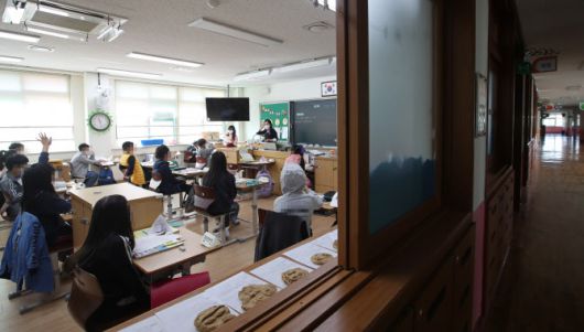 사회적 거리두기 1단계 완화 등에 따라 전국에서 일선 학교의 등교수업이 전면적으로 확대된 지난달 19일 광주 북구 신용초등학교 3학년 5반 학생들이 교실에서 수업을 받고 있다.(사진=연합뉴스) |