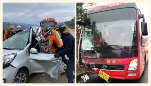또 승용차 조수석에 타고 있던 동승자 B모(60대 여성 추정) 씨는 중상을 입었다.