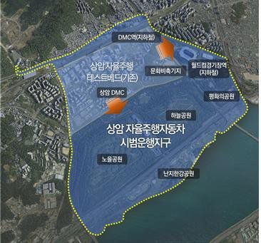 자율주행차 유상 서비스가 도입되는 상암 시범운행지구 위치도. 국토교통부 제공 |