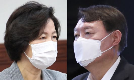 추미애 법무부 장관(왼쪽), 윤석열 검찰총장. 연합뉴스 |