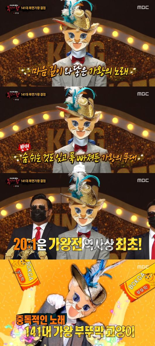 [OSEN=장우영 기자] 부뚜막 고양이가 ‘복면가왕’ 가왕전 역사 최초로 20표를 쓸어 담는 압도적인 실력으로 5연승을 내달렸다.