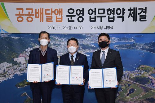 여수시는 최근 만나플래닛, 여수시소상공인연합회와 공공 배달앱 운영을 위한 업무협약을 했다.