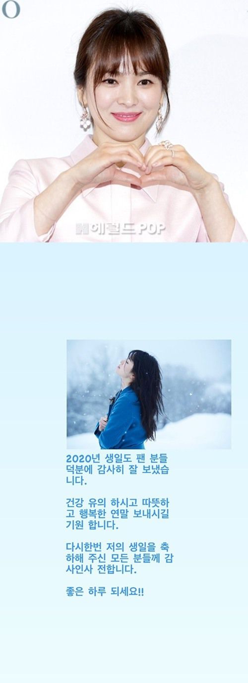 앞서 지난 22일 송혜교의 생일이었던 가운데 팬들이 축하 물결을 이어가자 송혜교가 직접 고마운 마음을 전한 것으로 보인다.