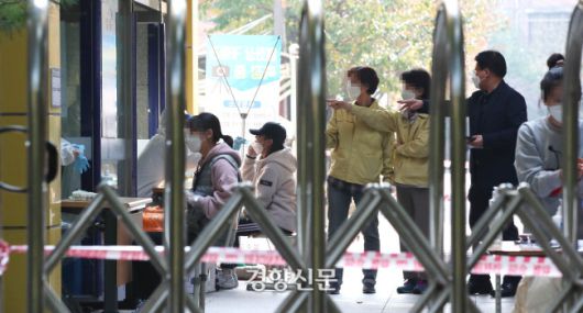 서울의 한 고등학교에서 학생 한명이 코로나19 확진 판정을 받자 교내에 선별진료소가 마련돼 학생들이 진단검사를 받고 있다. |김기남 기자 kknphoto@kyunghyang.com |