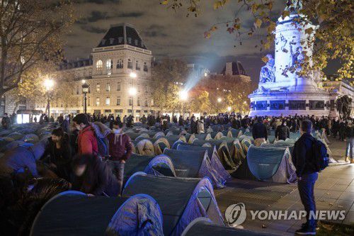 프랑스 파리 레퓌블리크 광장에 난민들을 위해 설치한 텐트 |