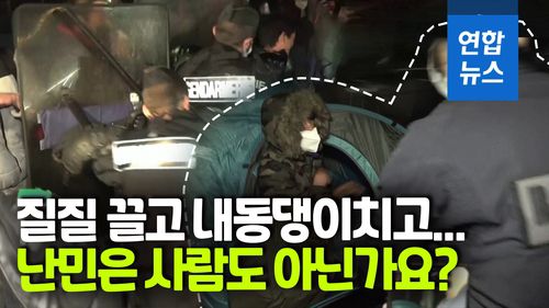 저항하는 난민들을 발로 걷어차거나 봉으로 때렸고 항의하는 사람들을 향해 최루탄을 발사하기도 했습니다.