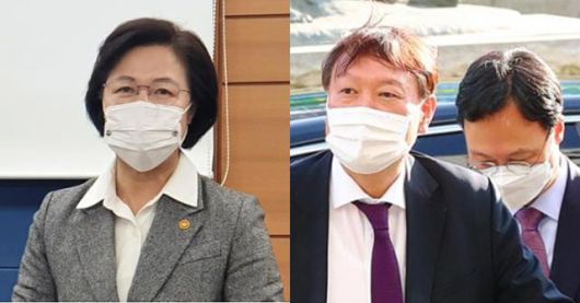 추미애(왼쪽) 법무부 장관과 윤석열 검찰총장. 한국일보 자료사진 |