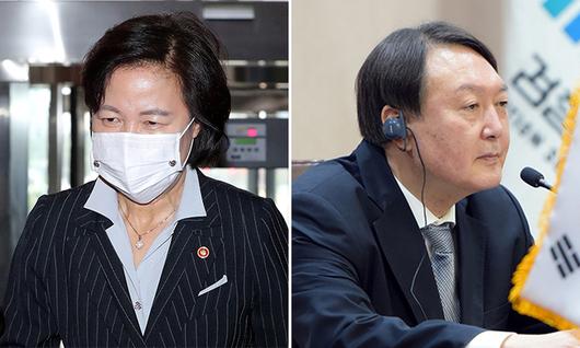 추미애 법무부 장관(왼쪽), 윤석열 검찰총장. 뉴시스 |