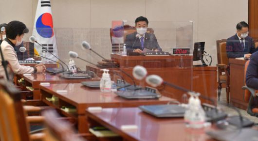 25일 국회 법제사법위원회 전체회의에서 국민의힘측이 요청한 윤석열 검찰총장 출석안에 대해 윤호중 법사위원장이 여야 간사간 합의가 이뤄져야 한다고 밝히고 있다. (사진=연합뉴스) |