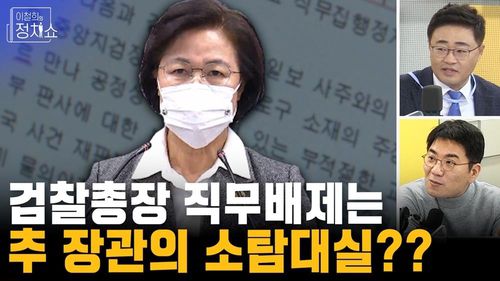추 장관은 지난 24일 윤 총장을 감찰한 결과 심각하고 중대한 비위 혐의가 확인돼 직무 수행을 더는 용납할 수 없다고 밝혔다. 현직 법무부 장관이 검찰총장을 직무에서 배제한 것은 헌정사상 처음 있는 일이다.