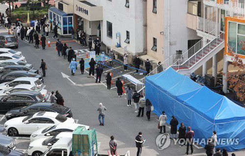 선별진료소 앞 대기 줄 |