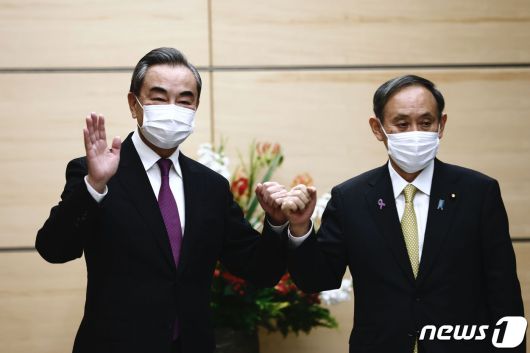 (서울=뉴스1) 박혜연 기자 = 스가 요시히데 일본 총리가 25일 왕이 중국 국무위원 겸 외교부장과의 만남에서 "중일 간 안정적 관계가 중요하다"고 말했다.