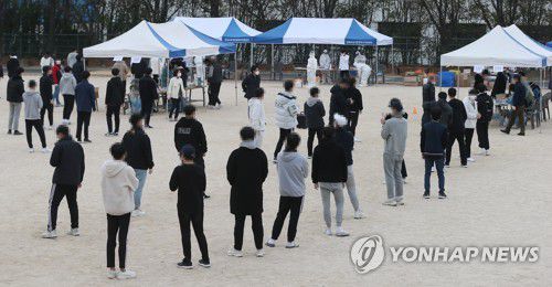 확진자 발생한 고교 학생들, 코로나19 검사 |
