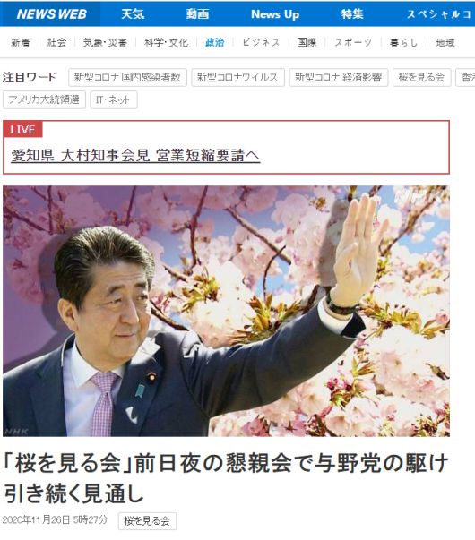 아베 신조(安倍晋三) 전 일본 총리가 재임 기간 정부 행사인 ‘벚꽃을 보는 모임’(벚꽃모임)을 사유화했다는 의혹과 관련해 검찰 수사가 본격화하면서 후임자인 스가 요시히데(菅義偉) 총리를 향한 정치 공세도 커지고 있다.
