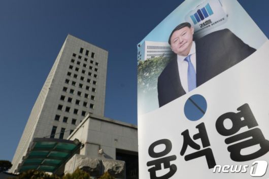 25일 서울 서초구 대검찰청 앞에 윤석열 검찰총장 얼굴이 그려진 배너가 세워져 있다./사진=뉴스1 |
