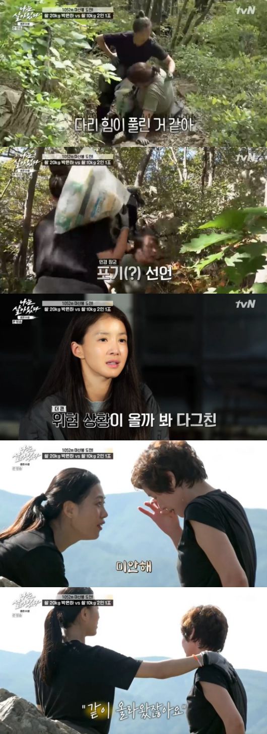 또 김성령은 김지연이 계속 쌀 10kg을 들고 오른 것에 대해 미안해했다. 결국 김성령은 눈물 흘렸고, 김지연은 "잘했다. 같이 올라왔다"라며 위로했다.