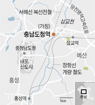 하지만 예산군의 기대가 무산될 처지에 놓였다. 예산군 삽교읍에 신설 예정이던 가칭 ‘충남도청역(삽교역)’이 제외될 위기에 처했기 때문이다. 2010년 고시된 서해선 기본계획에는 장래 신설 예정인 충남도청역을 포함해 8개의 역이 들어가 있었다. 2018년 국토교통부의 충남도청역 사전타당성 조사에서는 하루 평균 예상 이용객이 8506명에 달해 비용 대비 편익(B/C)은 1.07, 수익성(R/C)은 1.88로 나왔다. B/C나 R/C가 1을 넘으면 경제성이 있다는 의미다. 이에 국가철도공단은 2016년 7억원을 들여 충남도청역 예정 부지 7239㎡를 매입했다.